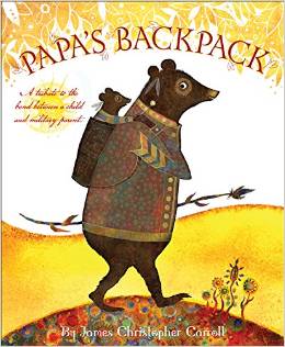 A young bear's soldier father is often away from home. The cub imagines riding in Papa's backpack ("so when he goes I'm near") as they face the enemy together. Despite an uneven rhythm, the text strives to capture emotions and may resonate with children who are missing a military parent on active duty. The stylized illustrations are striking and lend poignancy to the story.